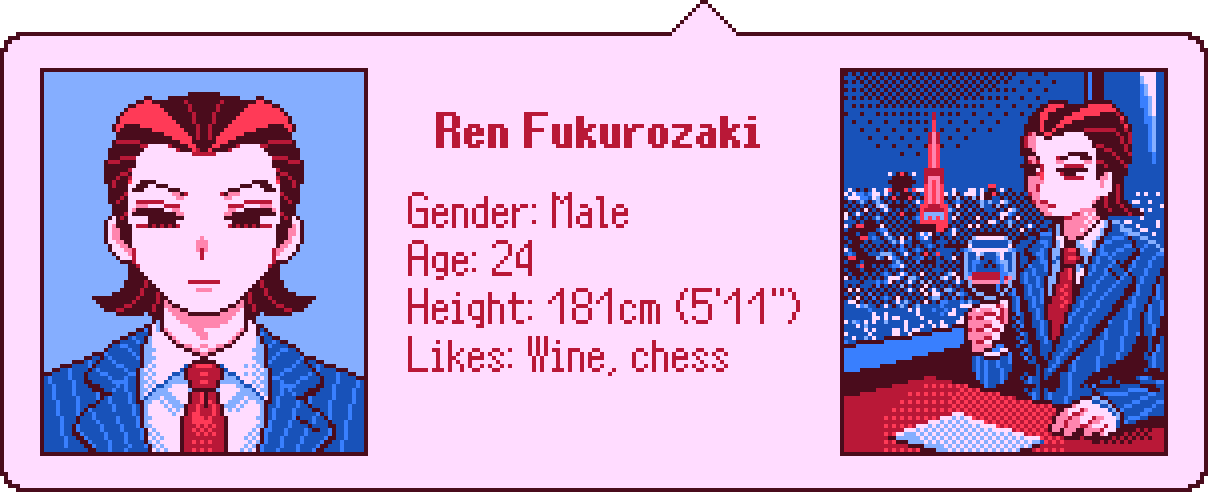 OMGGGG I LOVED THIS GAME SO MUCHHH THE ARTSTYLE WAS IMPECCABLE the characters despite having their flaws and at times being questionable…this was a very fun play through!! I really hope to get to see more of these characters in depth in maybe future games if not that’s okay too I’ll probably draw fanart or make and edit of this!! ^_^